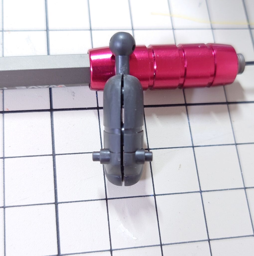 足首の外装部。ここも接着剤を流し込んで圧着するだけ。同時に後ハメ加工をしておく。