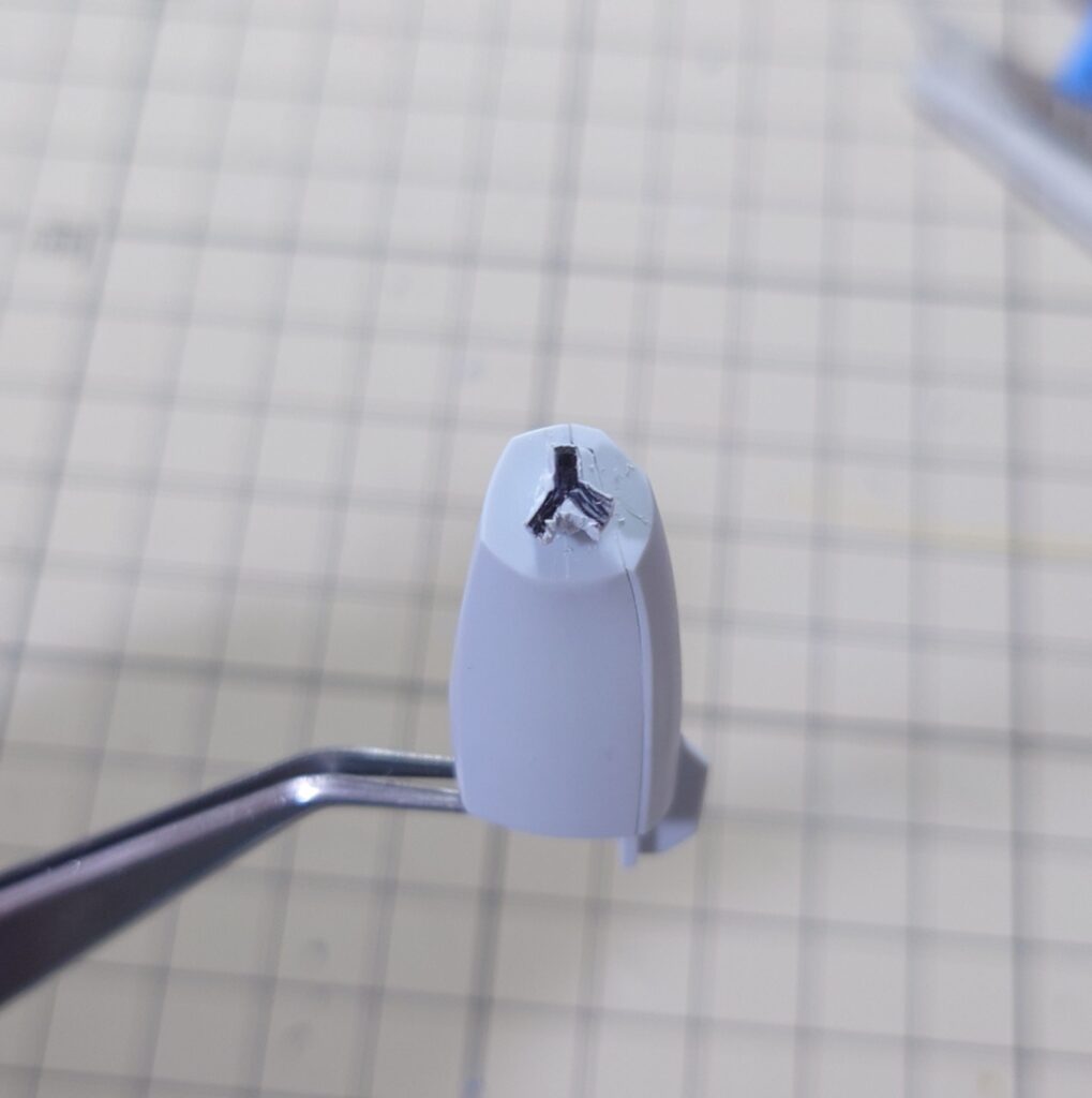 左ブースター部と右接続パイプ部。Y字に削ることにした。作例なんかを見てると、