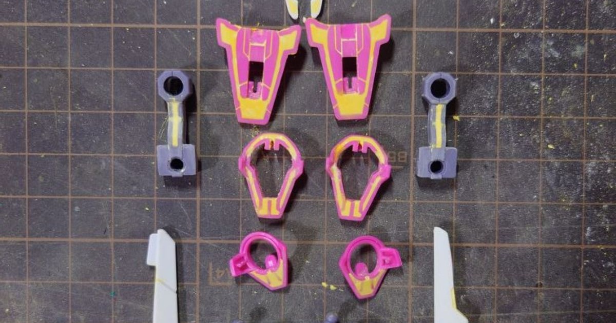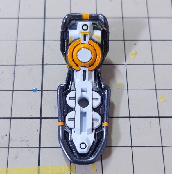 シールド裏のオレンジの円状のところは完全に失敗。マスキングも失敗してるし。なんでだろ。その時はなんか凄く焦って塗っていた気がする。別に何ら急いでいることも無かったのに。多分、もう終わりたかったんだろうなぁ。。。(遠い目)まぁ、裏面なのでそんなにわからないかと思ってそのまま。