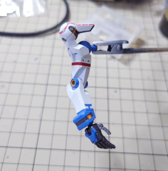 本体とブースターを接続するパイプ?部も塗り分け。全体をメタルブラックで塗った後、マスキングしてホワイト。