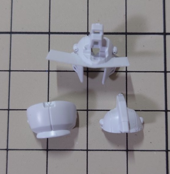 前回、折れた顔パーツが届いたので再加工。ひさし部の延長と、後ハメ加工。