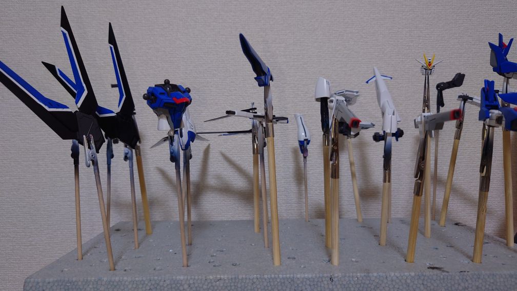 いや、羽根の塗り分けが大変だった。大変ではあったけど、噂で聞いていたほどではなかったかな。と、言う感じ。小さいわけでは無いので、丁寧に作業すればマスキングが難しいというわけでも無かった。